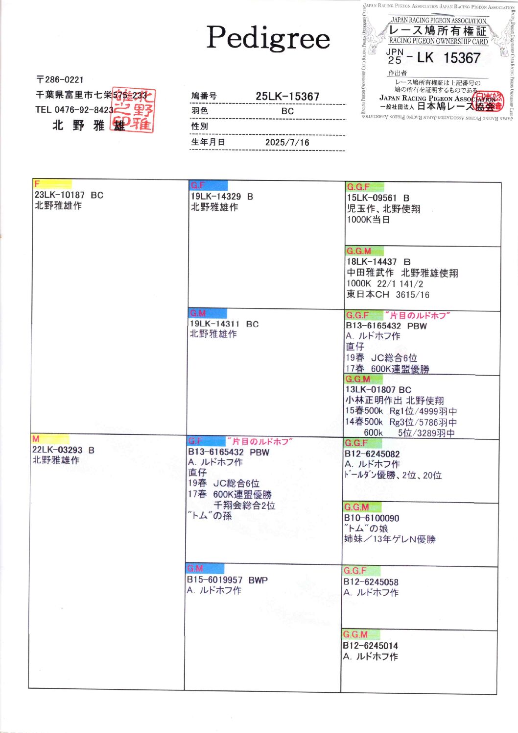 お買い物カゴを表示 “北野鳩舎 25LK-15327”をお買い物カゴに追加しました。