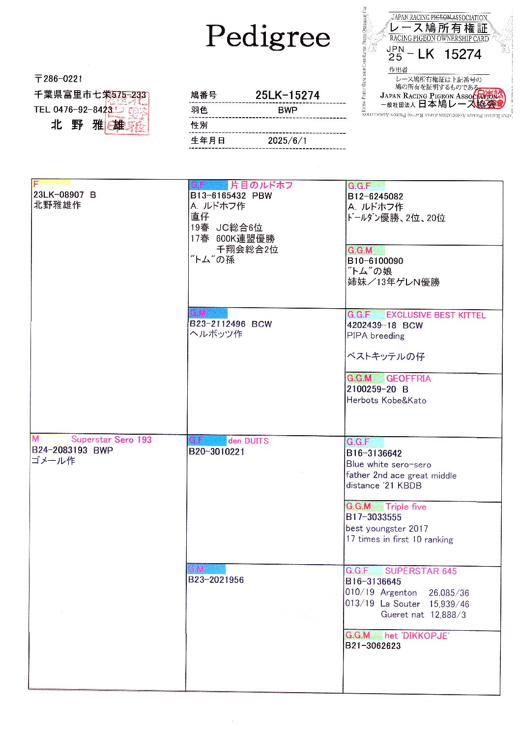 • 北野鳩舎 25LK-15367