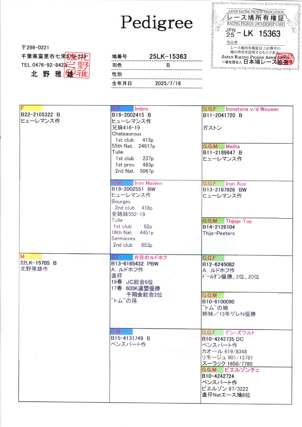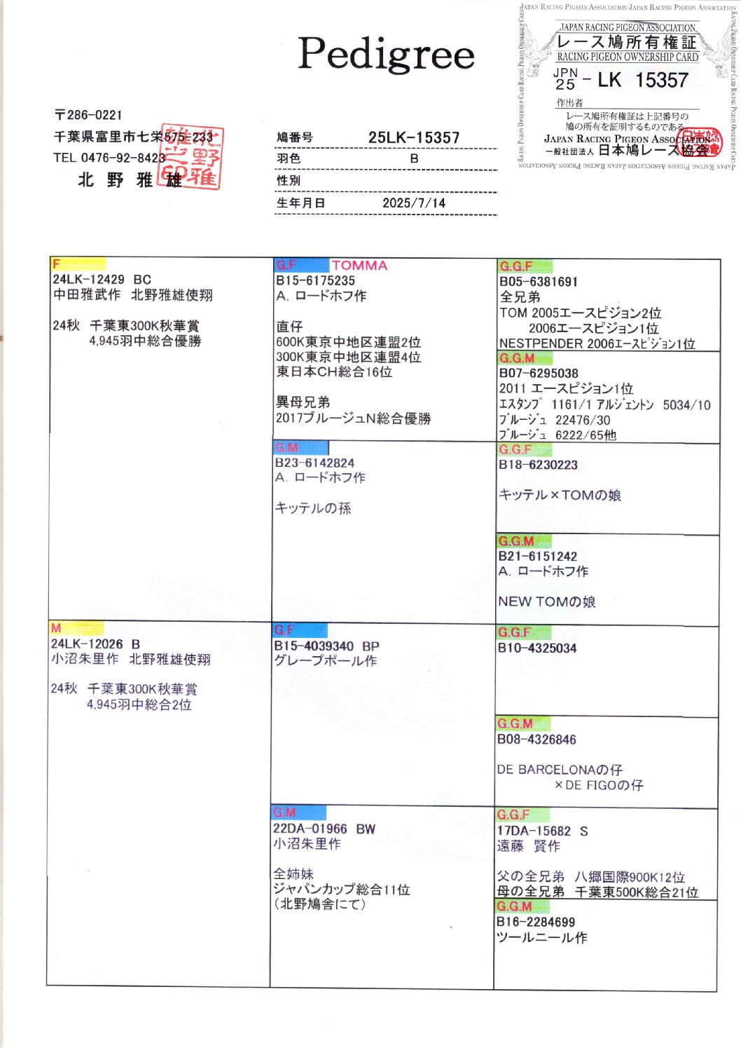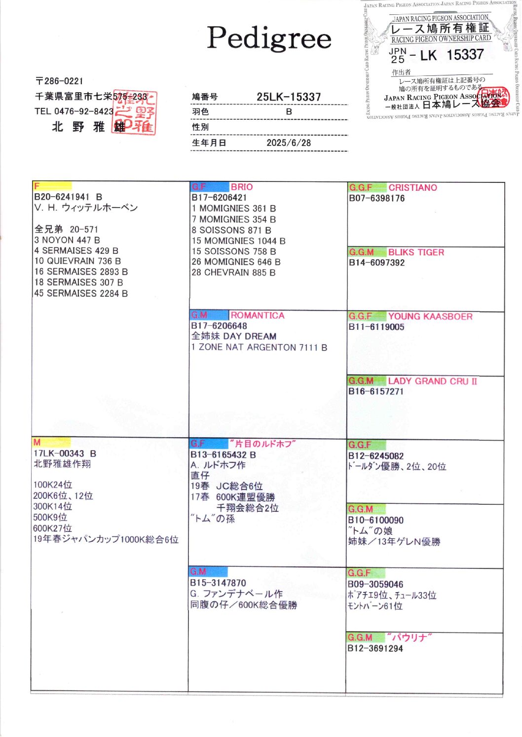 お買い物カゴを表示 “北野鳩舎 25LK-15339”をお買い物カゴに追加しました。