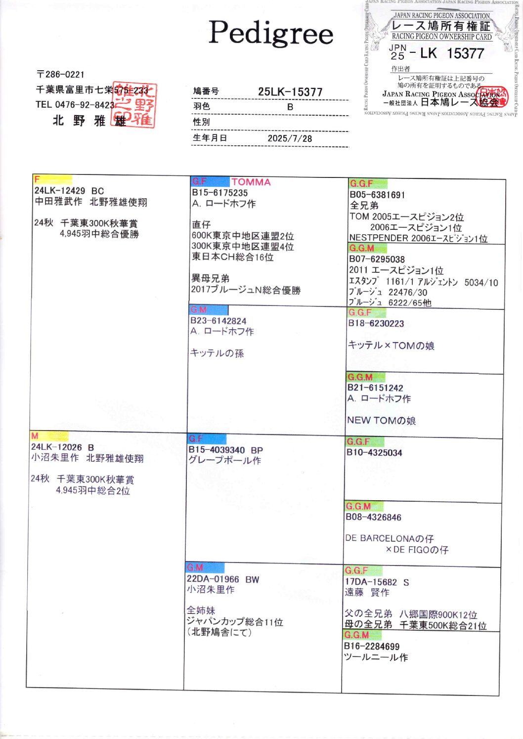 • 北野鳩舎 25LK-15392