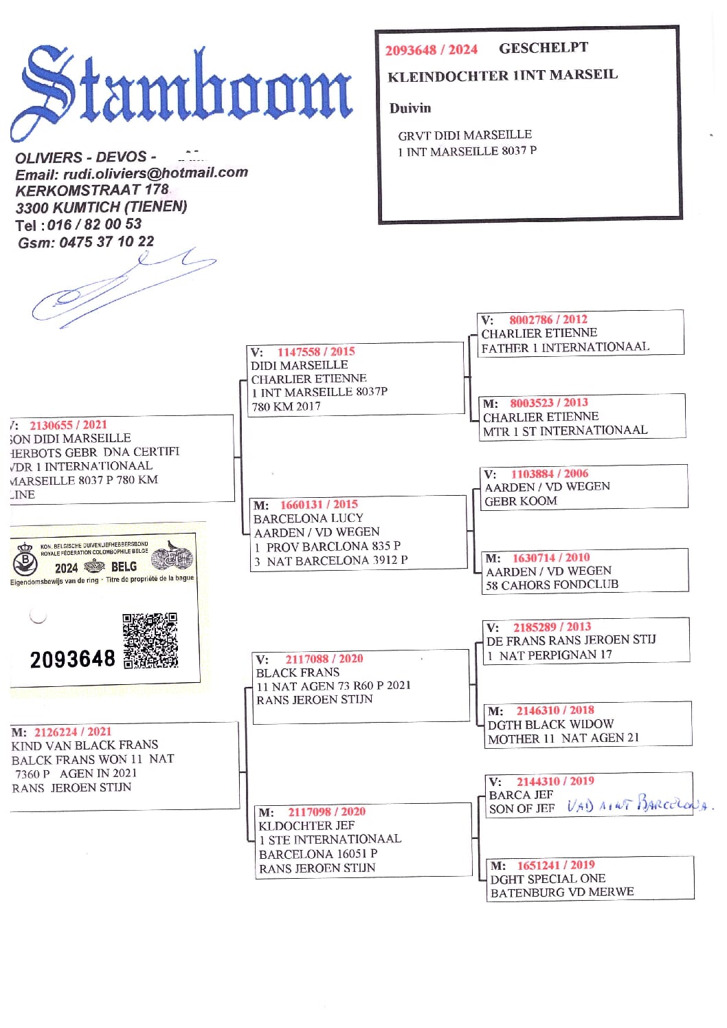 Oliviers Devos 2093648-24 北野鳩舎種鳩
