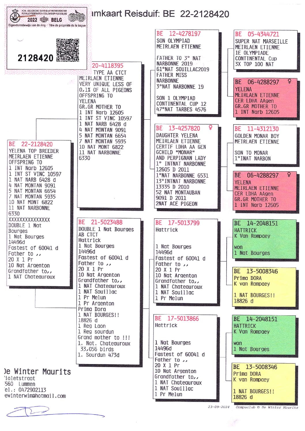 De WinterMaurits BE 22-2128420 北野鳩舎種鳩