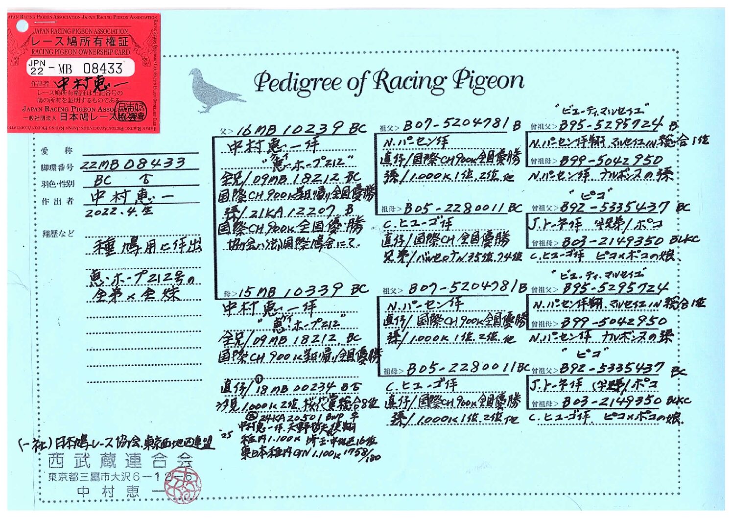 バンホープ 20-6241941 北野鳩舎種鳩