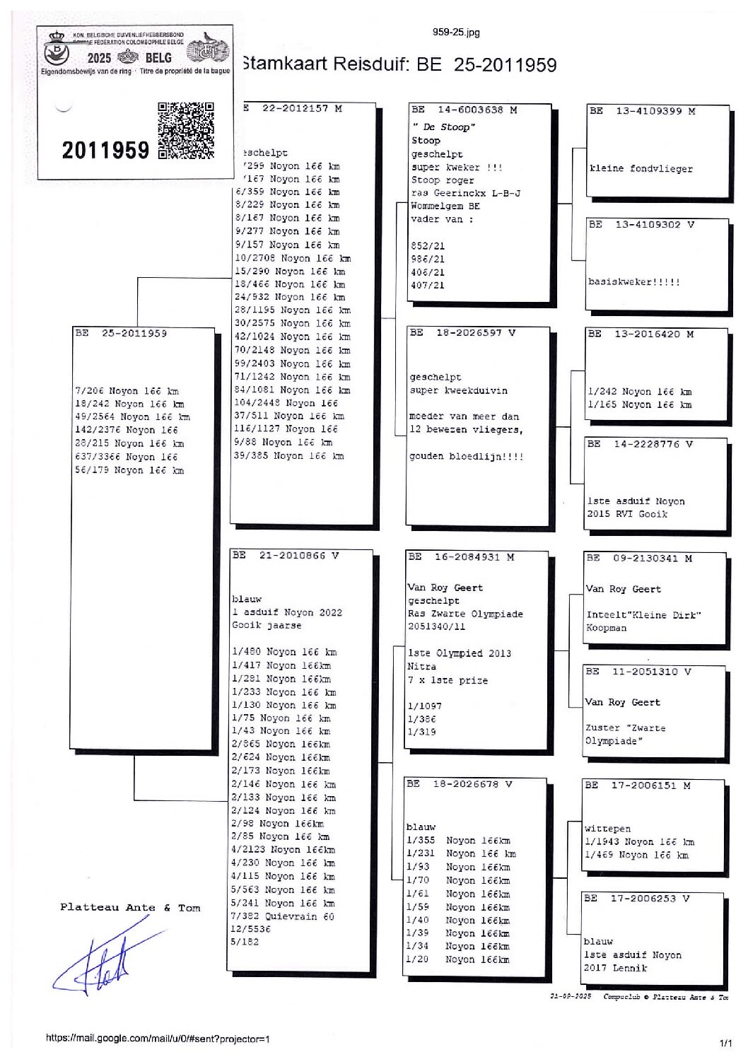 Giel Janssens NL23-9497483 北野鳩舎種鳩