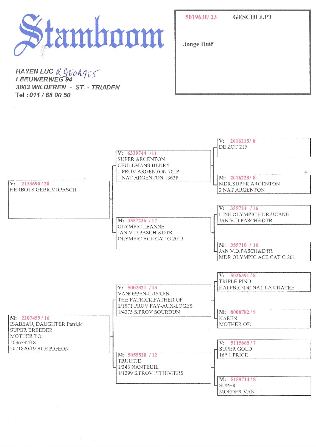 Nouwen Paesen 20-5115915 北野鳩舎行