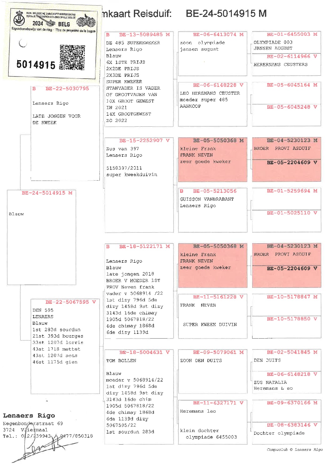 Nouwen Paesen 20-5115915 北野鳩舎行