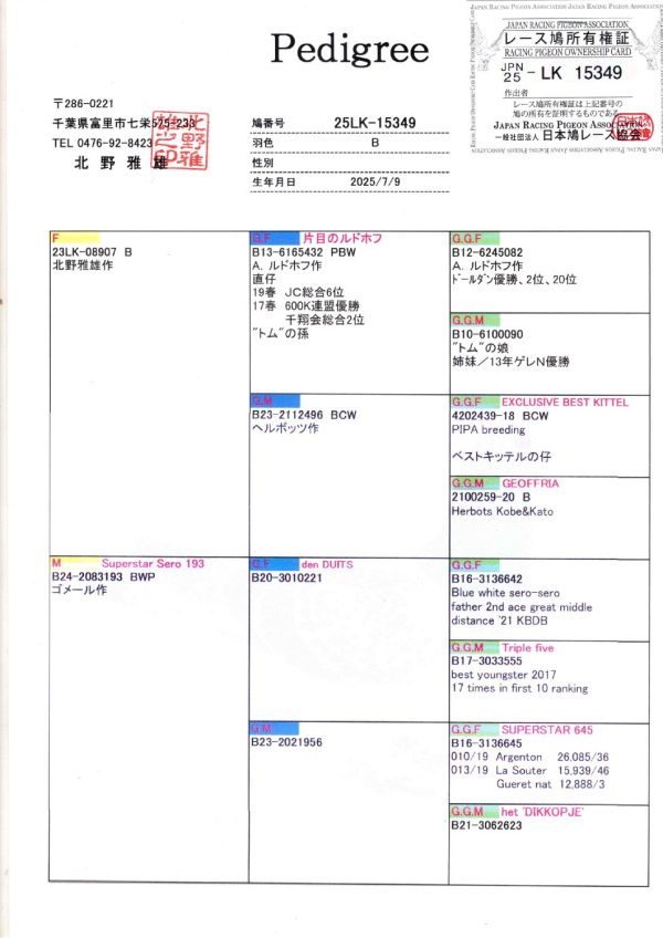 北野鳩舎 25LK-15349