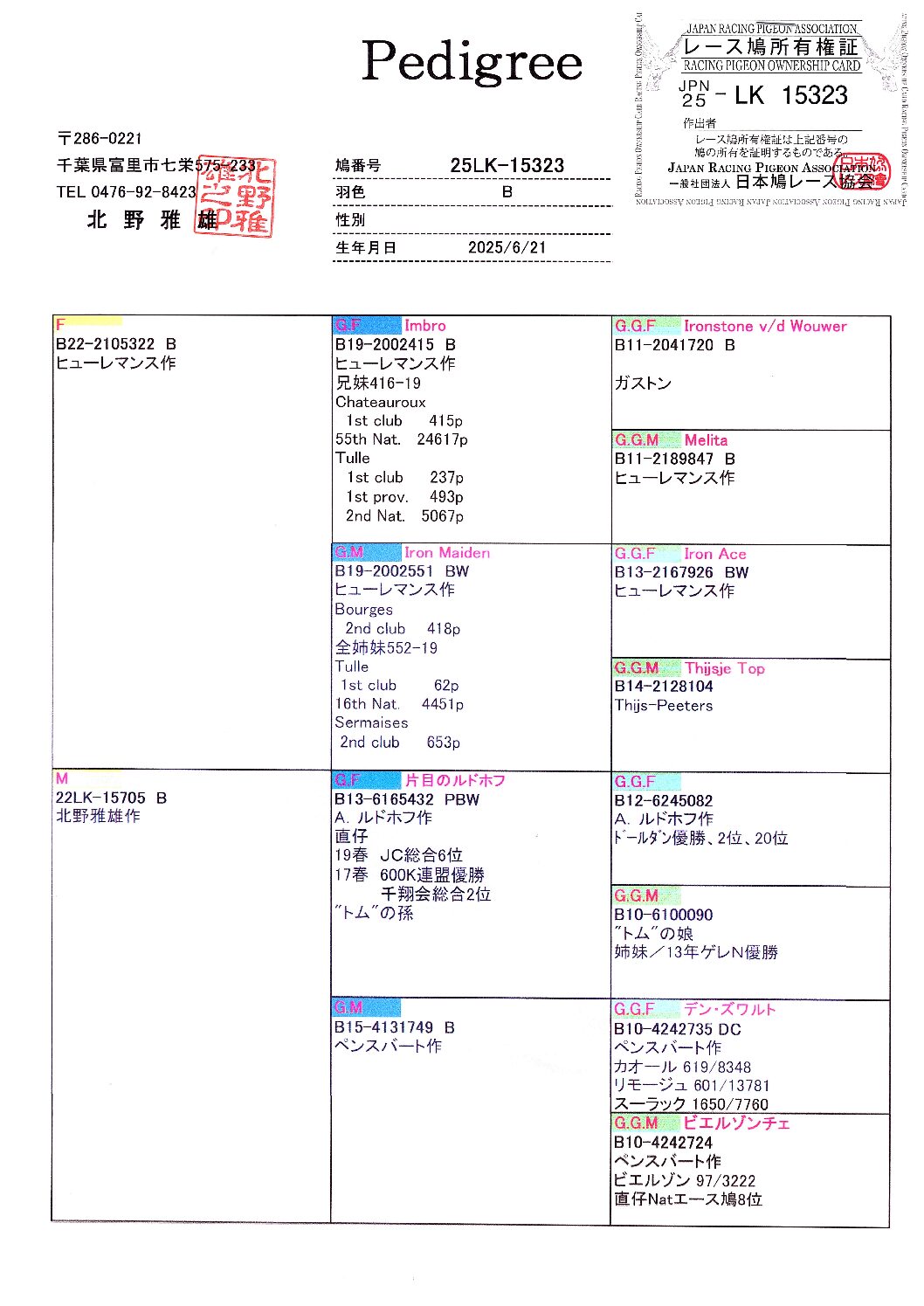 北野鳩舎 25LK-15323