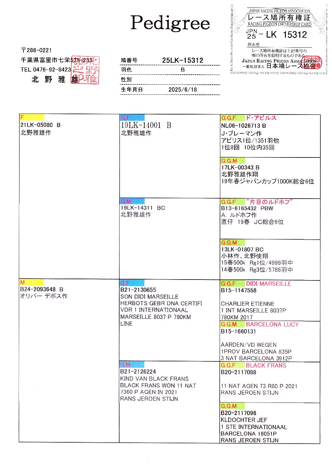 • 北野鳩舎 25LK-15368